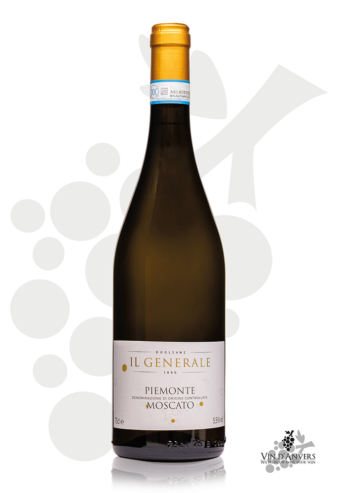 Naam: Dogliani Il Generale Moscato Druivensoorten: 100% Moscato Regio & land: Piëmonte, Italië Producent: Dogliani Inhoudsmaat: 75 cl Alcoholpercentage: 6% Serveertemperatuur: 10 °C – 12 °C